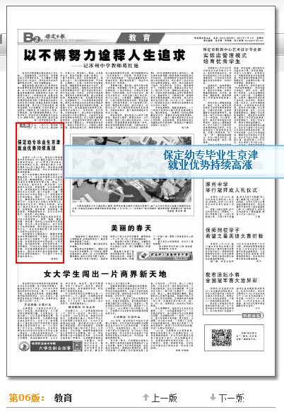 该校副校长王耀威表示,随着京津冀协同发展战略的进一步推进,以及河北雄安新区的设立和国家“二胎”政策的全面实施,学前教育阶段专业的幼教人才极度短缺。面对新的形势,学校积极改革人才培养模式,与知名幼儿园建立协同培养新机制,在加强师德教育和文化素养教育的基础上,强化学生职业基本技能训练,提高学生保教实践能力,大大提升了毕业生的就业竞争力。
